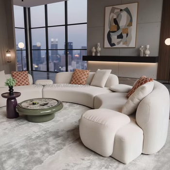 ספה מודולרית מודרנית-ספה בד בז 'נוחה עם שולחן קפה עגול לסלון