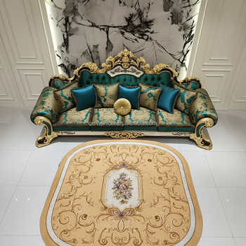 Lüks avrupa klasik kanepe Set oyma ahşap çerçeve ve deri döşeme ile Villa & otel için