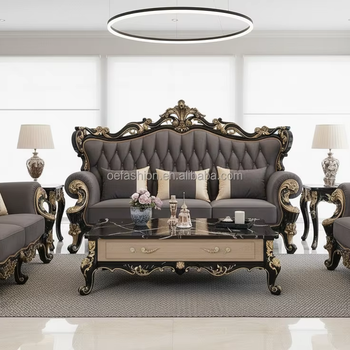Sang Trọng Châu Âu Cổ Điển Màu Xám Da Sofa Set Với Vàng Khắc Khung Thanh Lịch Đồ Nội Thất Phòng Khách Cho Biệt Thự Hoặc Khách Sạn