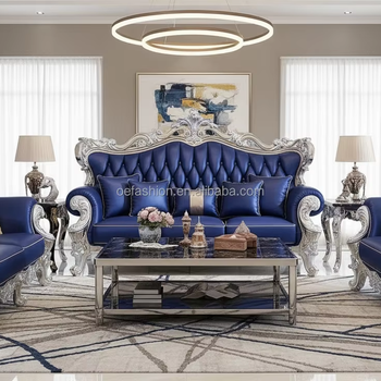 Sang Trọng Châu Âu Cổ Điển Màu Xanh Da Sofa Set Với Vàng Khắc Khung, Phòng Khách Thanh Lịch Đồ Nội Thất Cho Biệt Thự Hoặc Khách Sạn